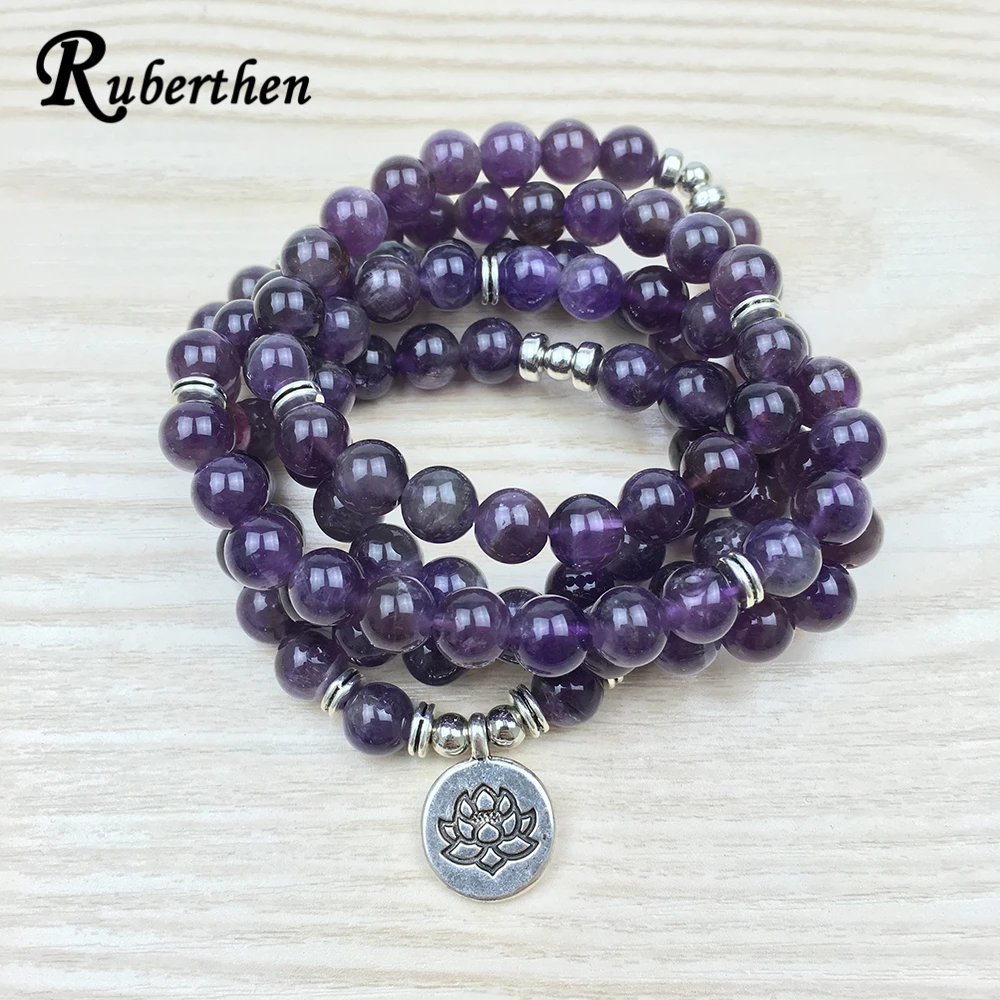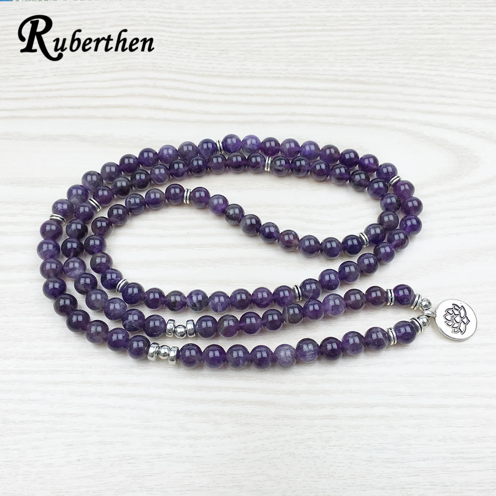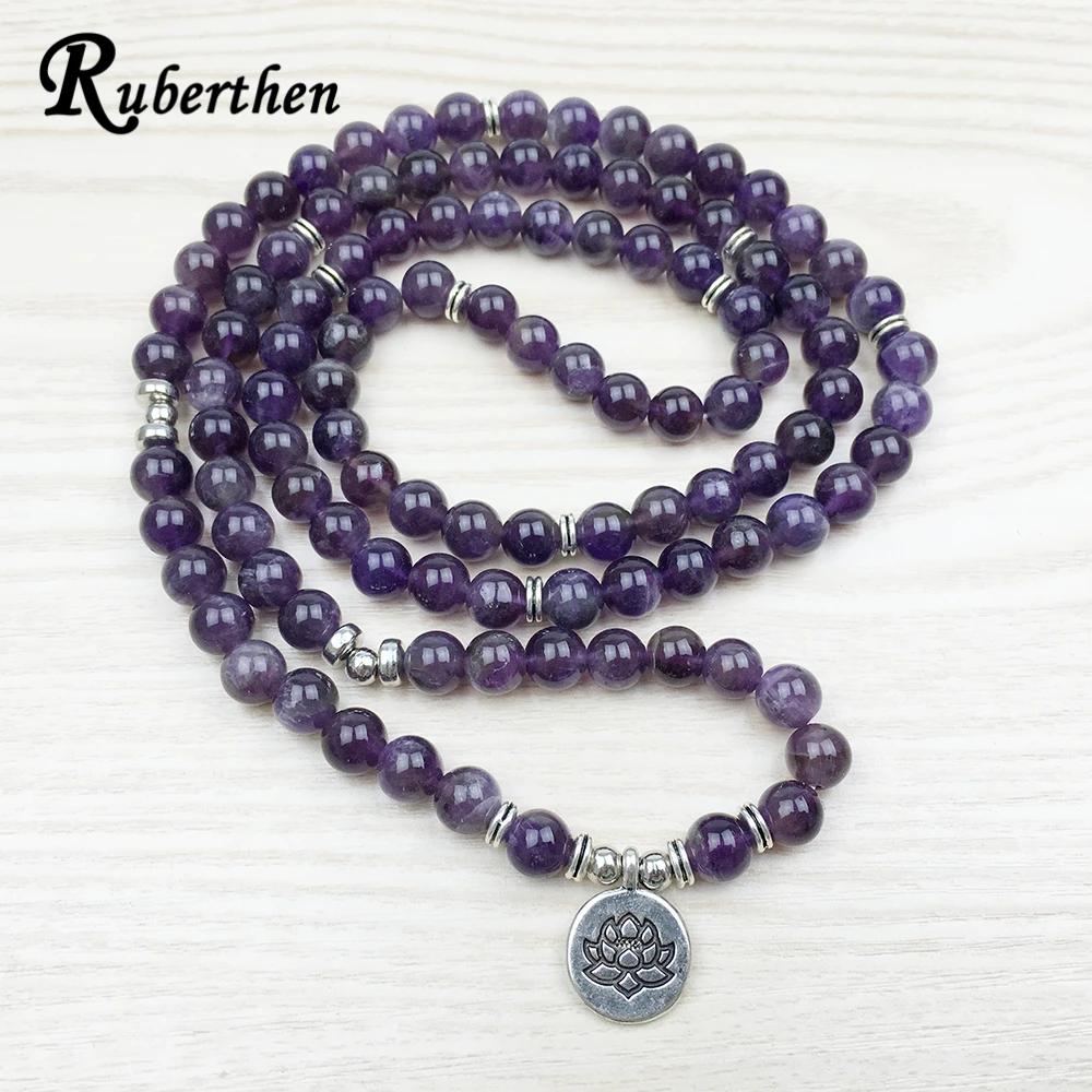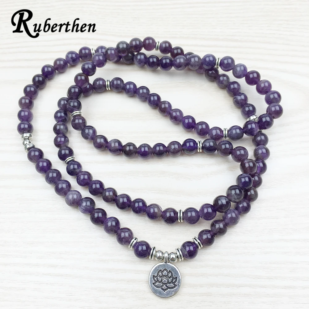 Special Offer Ruberthen 2018 luksusowy projekt fioletowy kamień naturalny 108 Mala Lotus bransoletka lub naszyjnik Reiki opłata w wysokości buddyjski bransoletka różaniec Discount 10% Today!