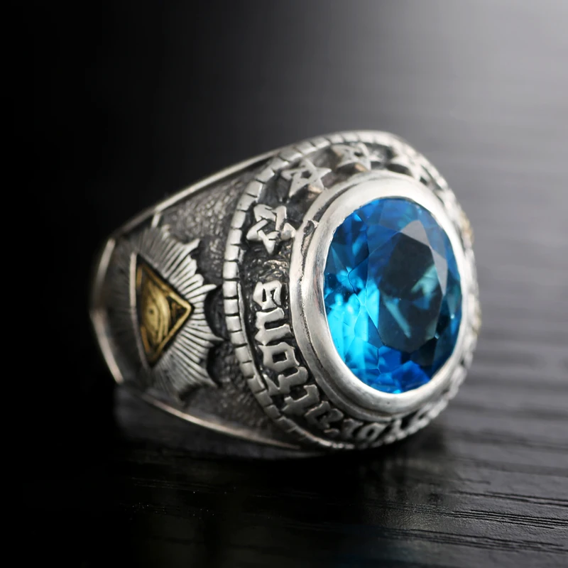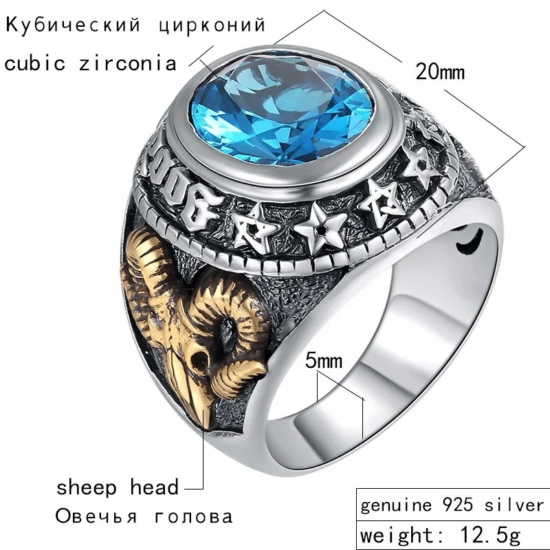 Special Offer ZABRA 925 srebro niebieskie z cyrkonią mężczyźni pierścień Vintage kamień Punk Rock złota głowa owcy Thai Handmade kobiety pierścionki srebro biżuteria Discount 30% Today!