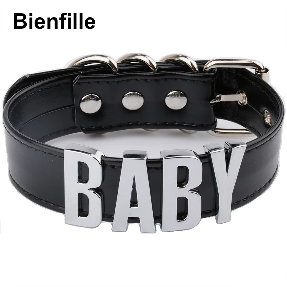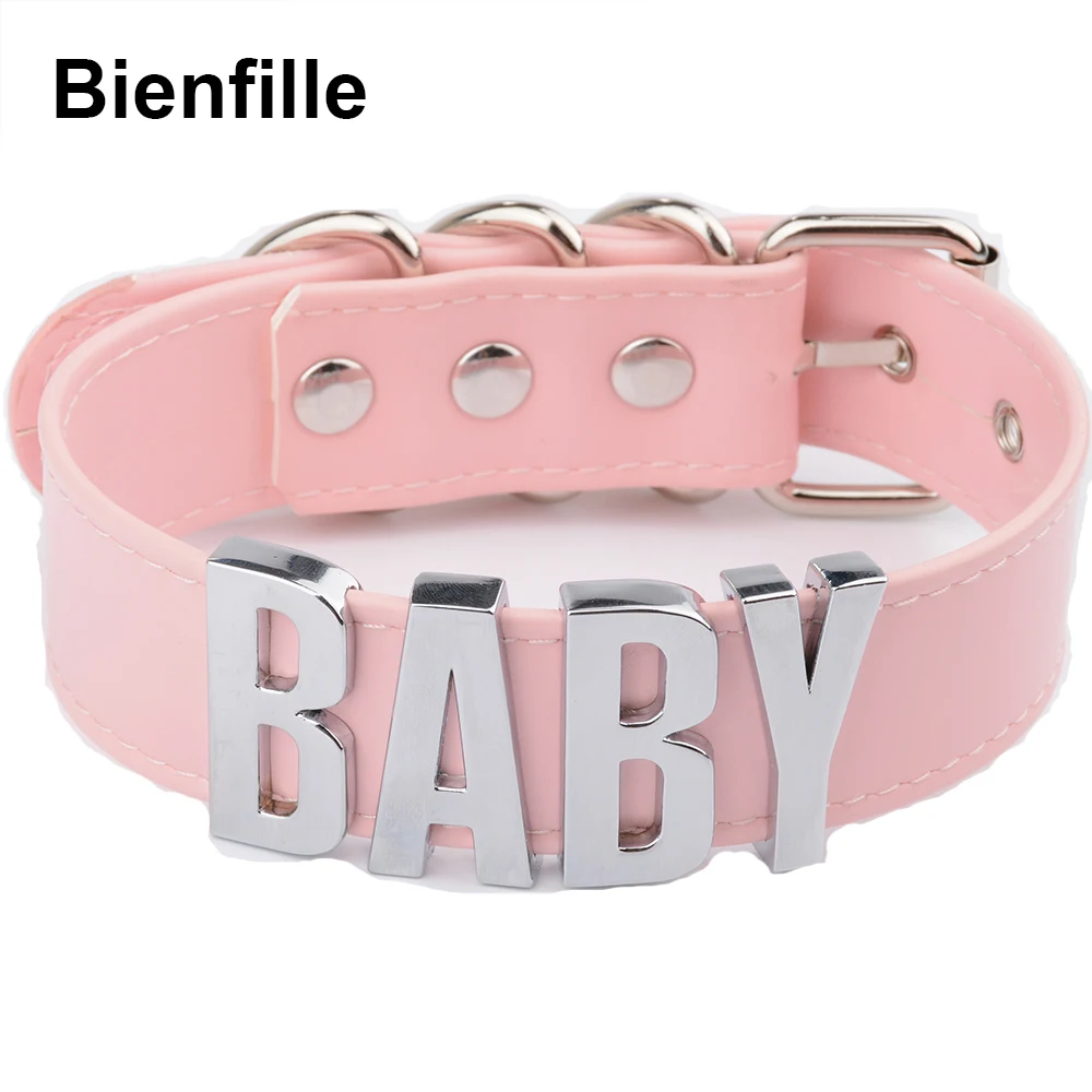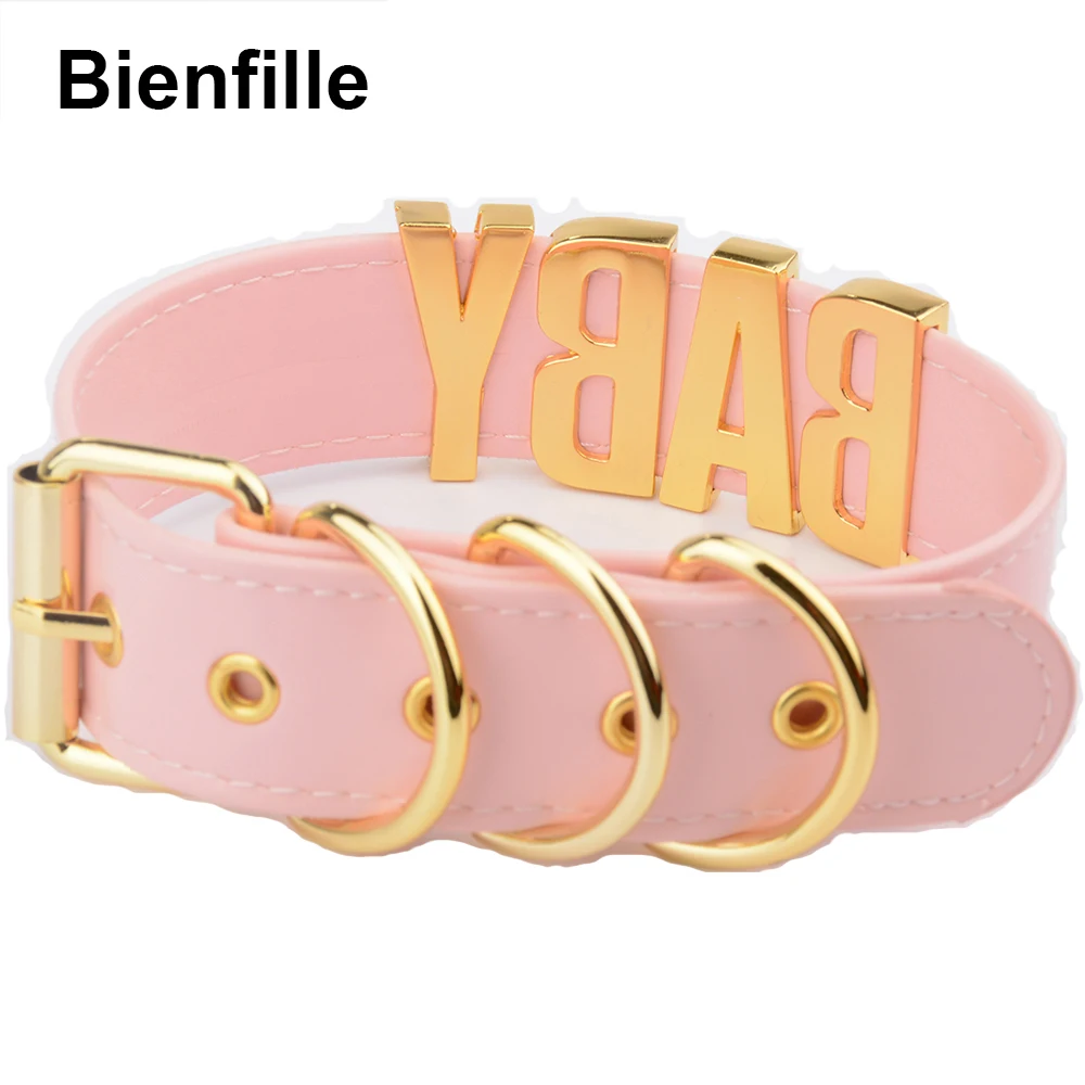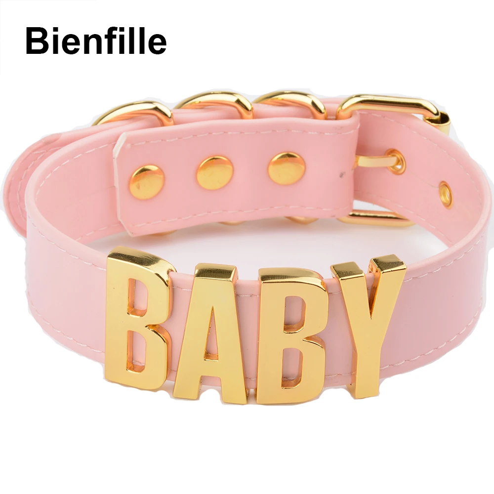 Special Offer Spersonalizowany urok Kawaii złoty metal litery dla dzieci Choker naszyjnik kobiety dziewczyna PU różowy skórzany punk harajuku kołnierz słowo naszyjnik Discount 39% Today!