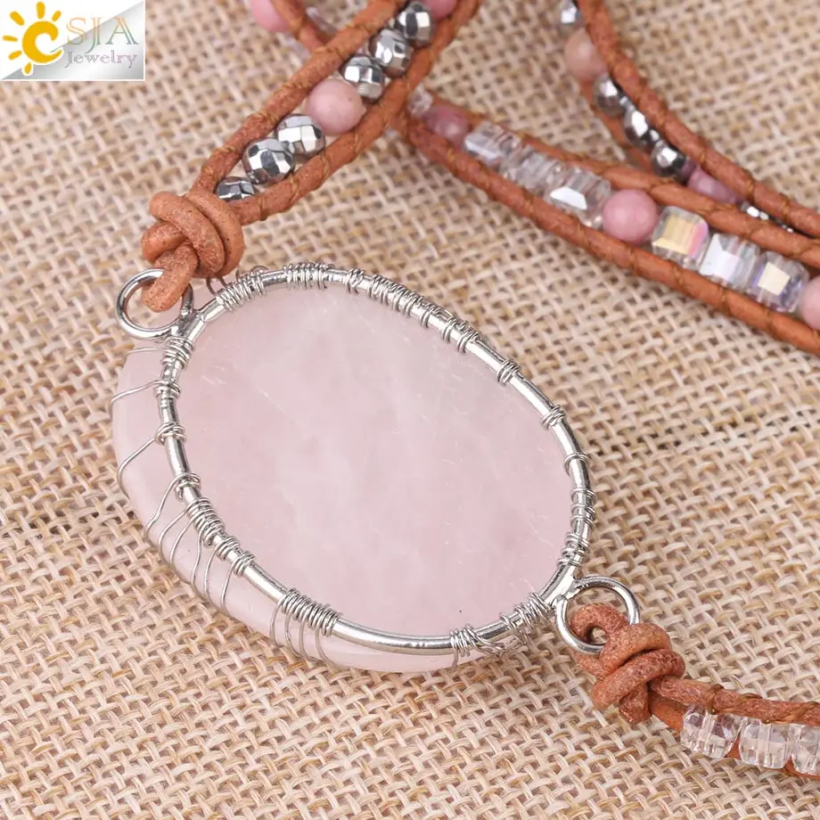 Special Offer CSJA drzewo życia kobiety biżuteria naturalny różowy kryształ kwarcowy kamień bransoletka Charms skórzane plecione klejnoty koraliki bransoletki S349 Discount 43% Today!