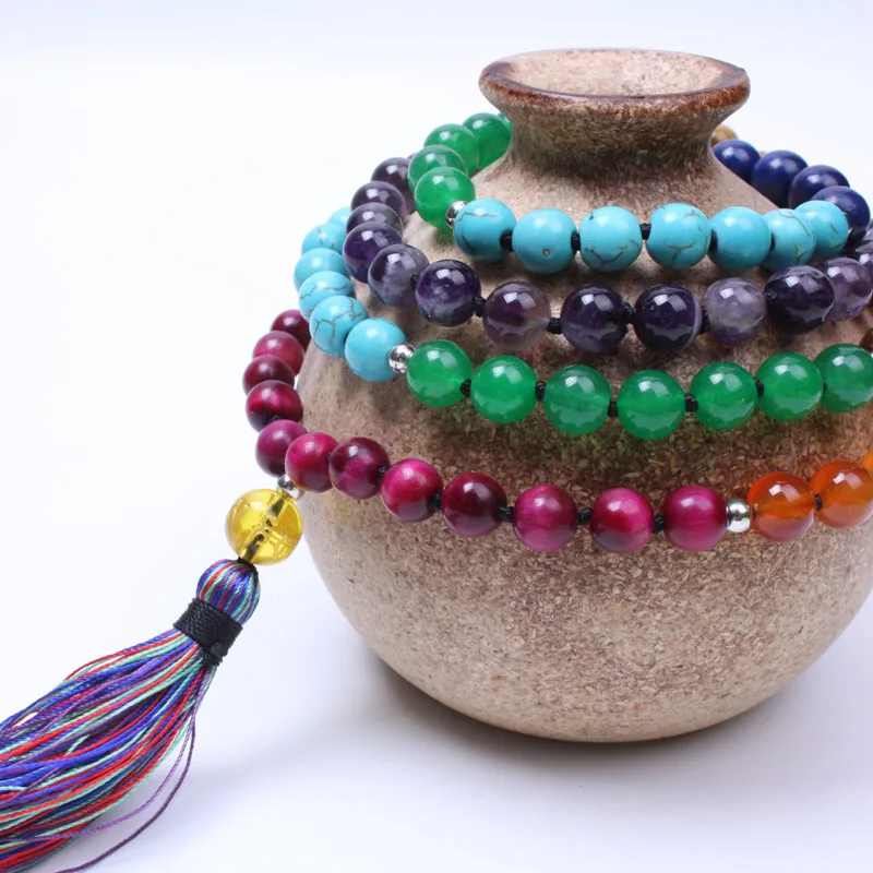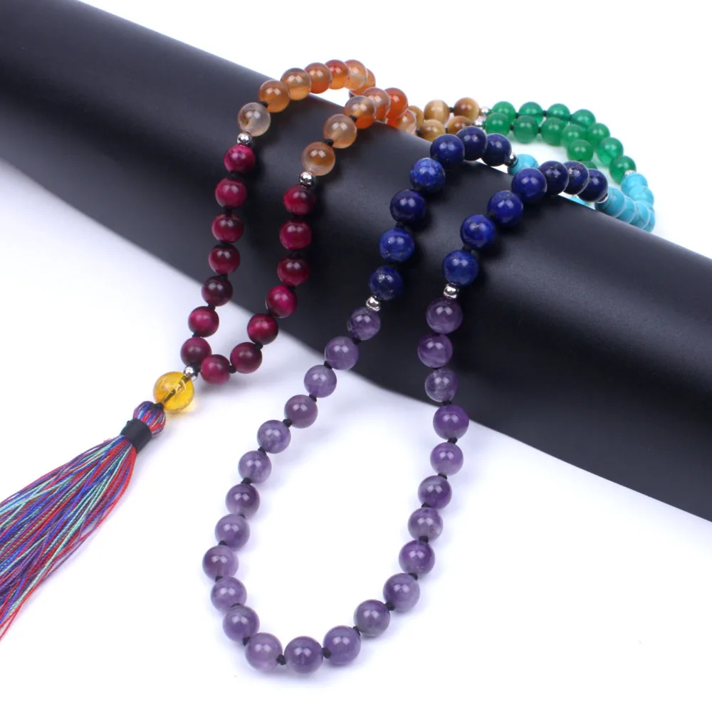 Special Offer Nowy 7 Chakra Mala yogi naszyjnik z kamienia naturalnego zroszony długi naszyjnik z frędzlem dla kobiet medytacja biżuteria naszyjnik maxi dropshipping Discount 0% Today!