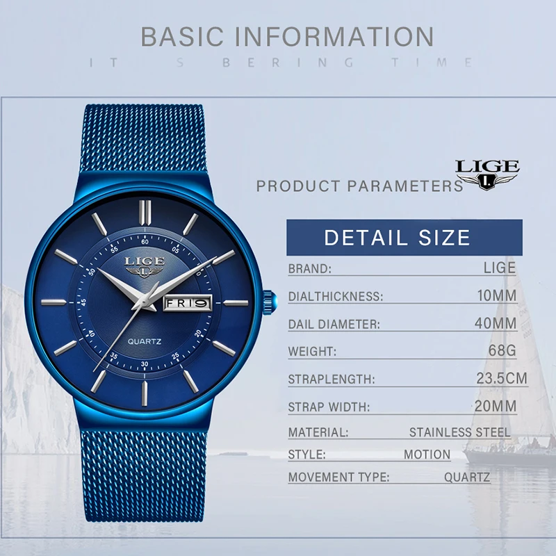 Special Offer 2019 nowy niebieski kwarc zegar LIGE męskie zegarki Top marka luksusowy zegarek dla mężczyzn proste wszystkie stalowe wodoodporne Wrist Watch Reloj Hombre Discount 92% Today!