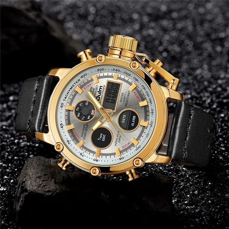 Special Offer Oulm złoty czarny podwójny wyświetlacz zegarka mężczyzna analogowe cyfrowe zegarki sportowe Dropshipping Discount 10% Today!