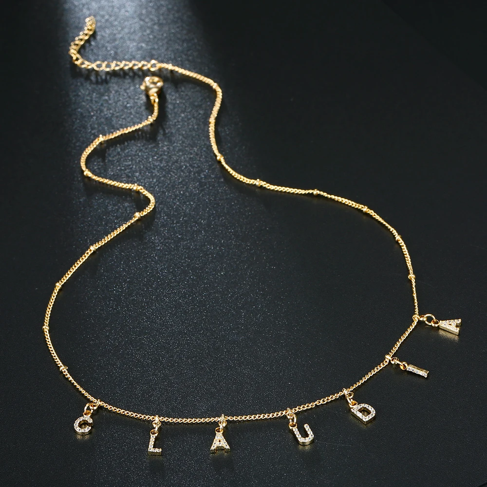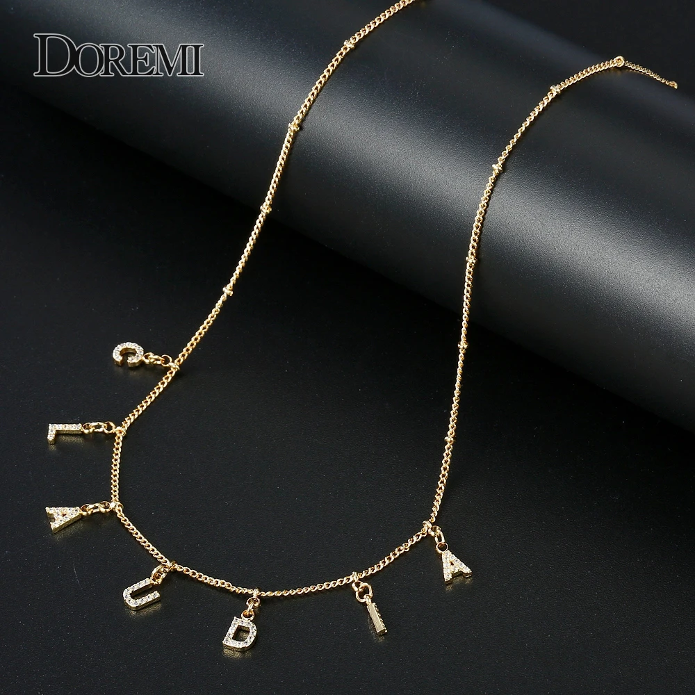 Special Offer DOREMI 3A cyrkon spersonalizowane złote imię naszyjnik z literami numery niestandardowe miedziane naszyjniki dla kobiet dziewczyna czcionki wisiorek Choker Discount 39% Today!