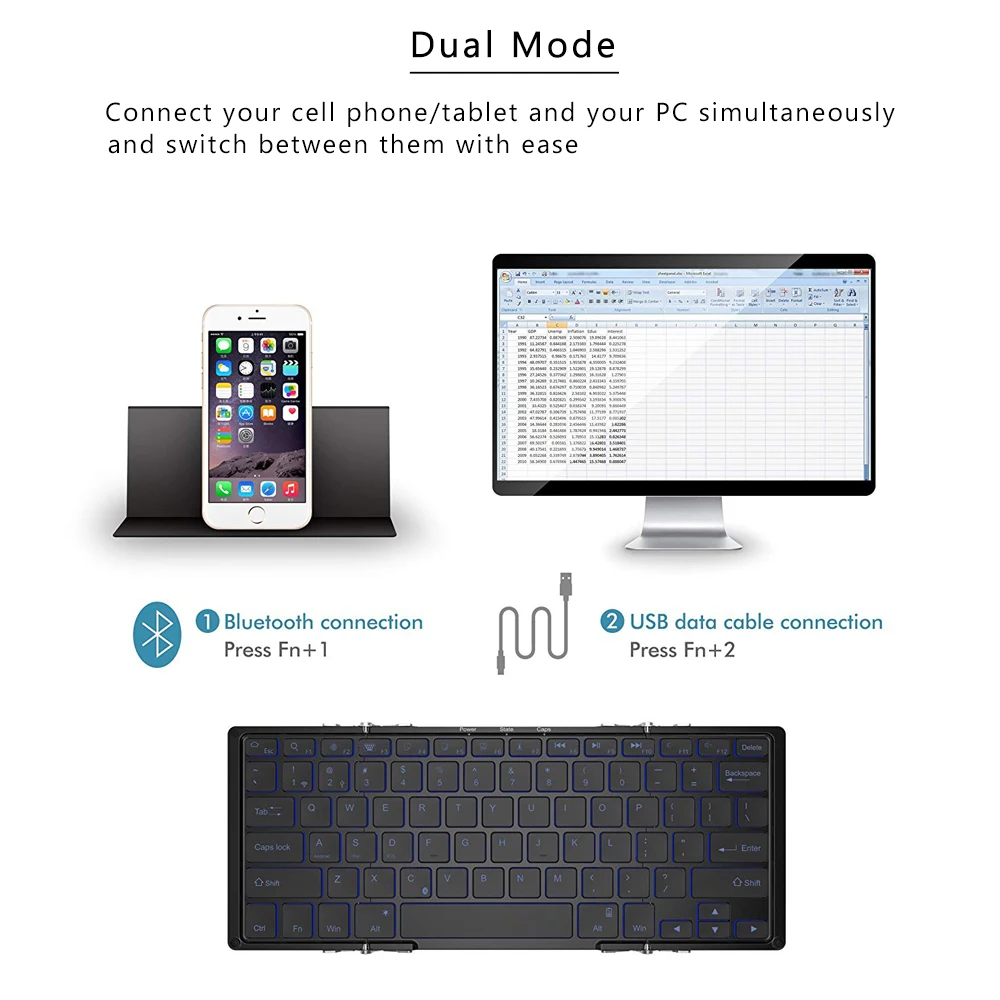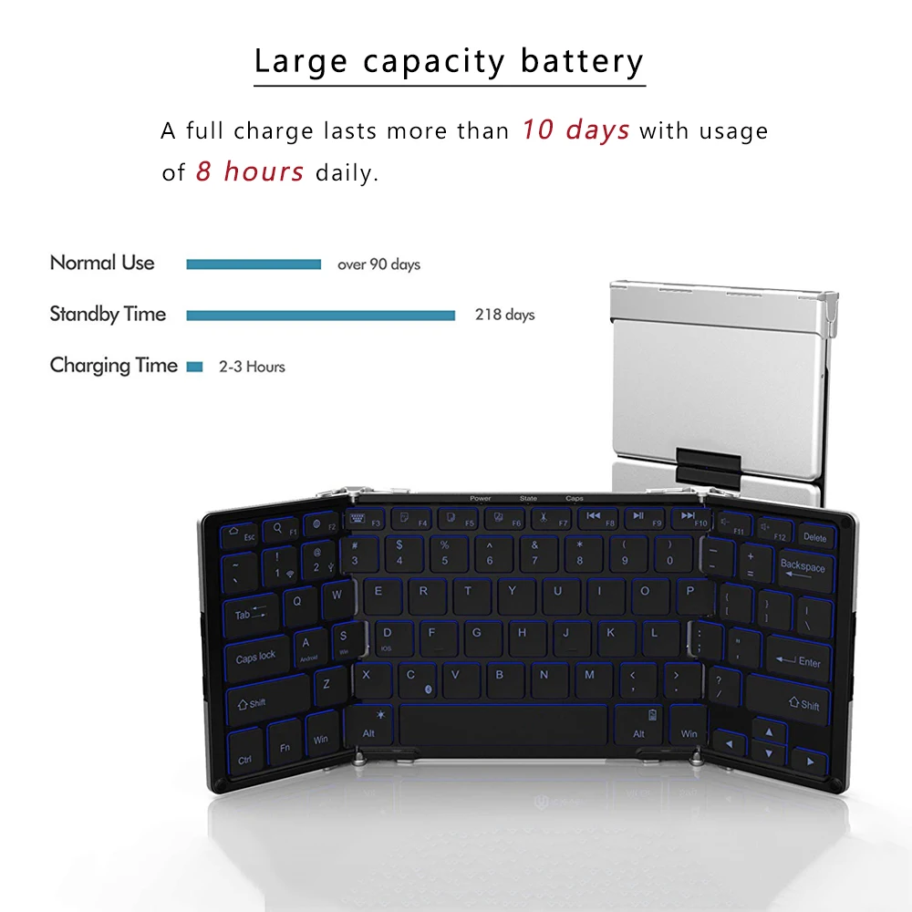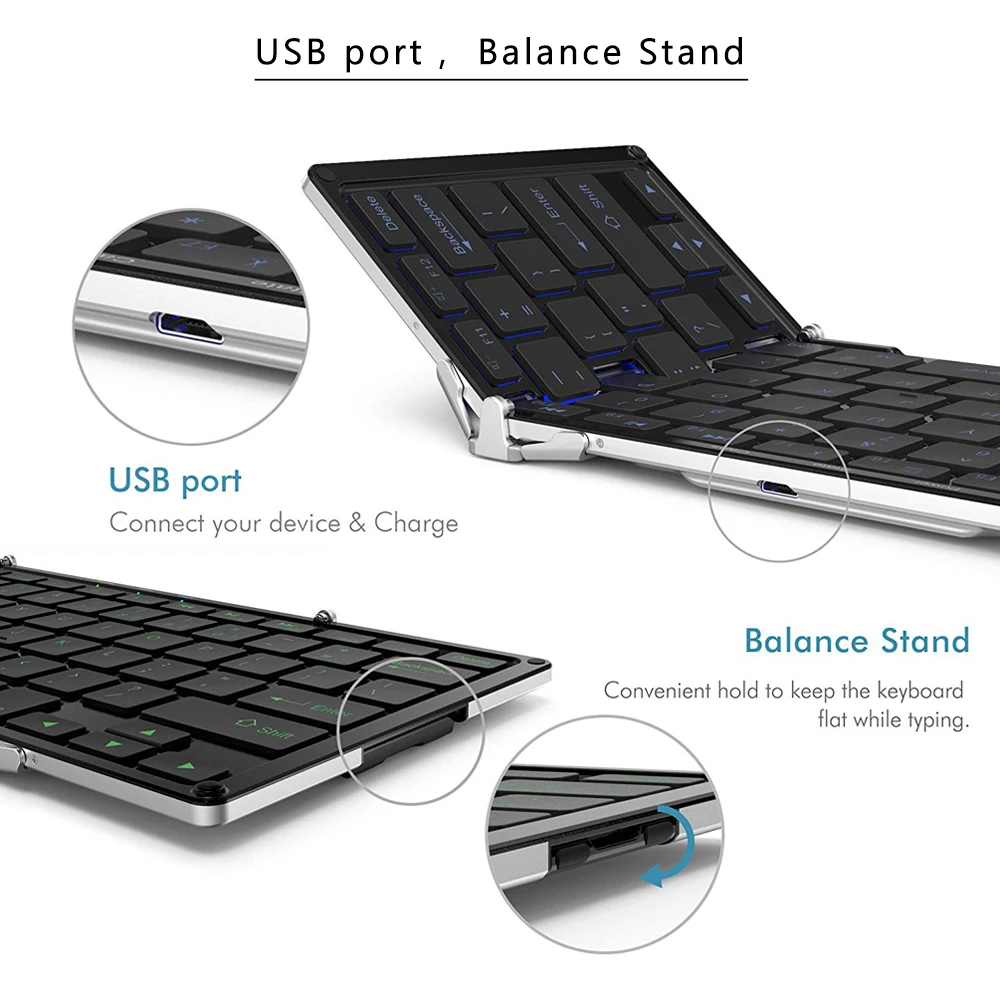 Special Offer AVATTO aluminiowa przenośna składana klawiatura Bluetooth, bezprzewodowa podświetlana klawiatura tabletu BT dla IOS Android Windows ipad Discount 40% Today!