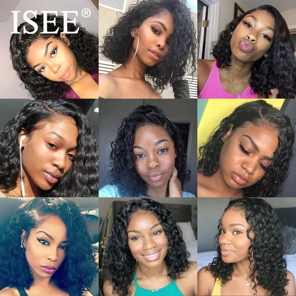 Special Offer ISEE włosy krótki Bob 360 koronki przodu peruka Remy koronki przodu włosów ludzkich peruk dla kobiet brazylijski Water Wave Bob koronki przodu peruki Discount 53% Today!